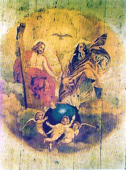 - „Chrystusa Pankratora” (WÅ‚adcy Åšwiata), trzymajÄ…cego w dÅ‚oni kulÄ™ ziemskÄ…, z Å‚aciÅ„skim napisem na rozwijajÄ…cej siÄ™ szarfie wokół gÅ‚owy
