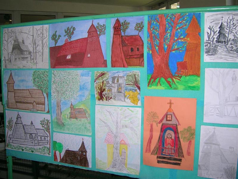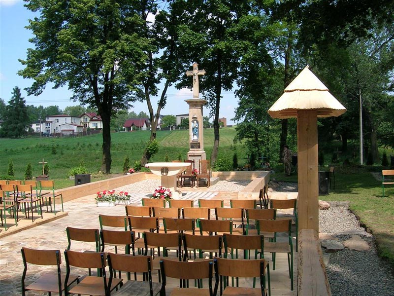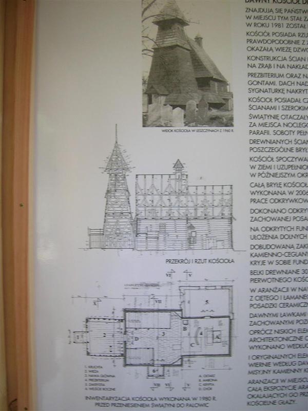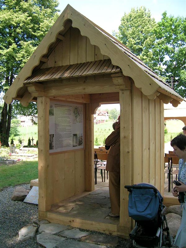 W kruchcie umieszczono tablice informacyjne o kościele i cmentarzu.