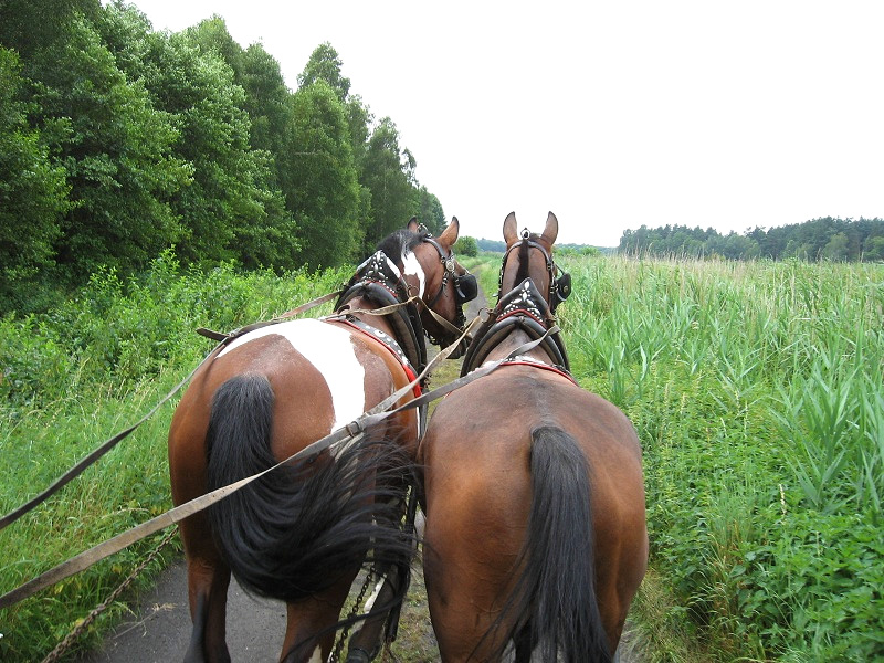 Bryczka pełna dziennikarzy w Palowicach