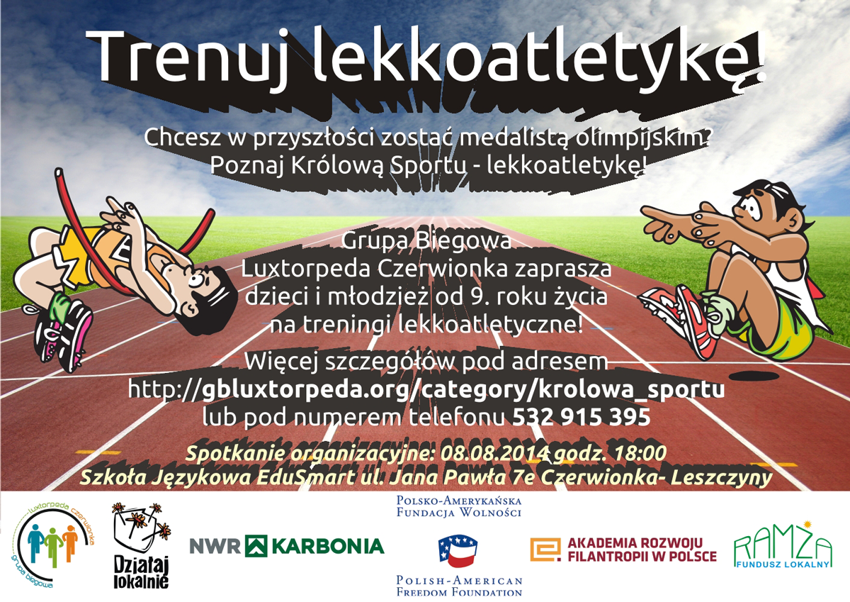 Zapraszamy dzieci i mÅ‚odzież do udziaÅ‚u w zajÄ™cia lekkoatletycznych w ramach projektu „Poznajemy KrólowÄ… Sportu”, który realizuje Luxtorpeda Czerwionka.